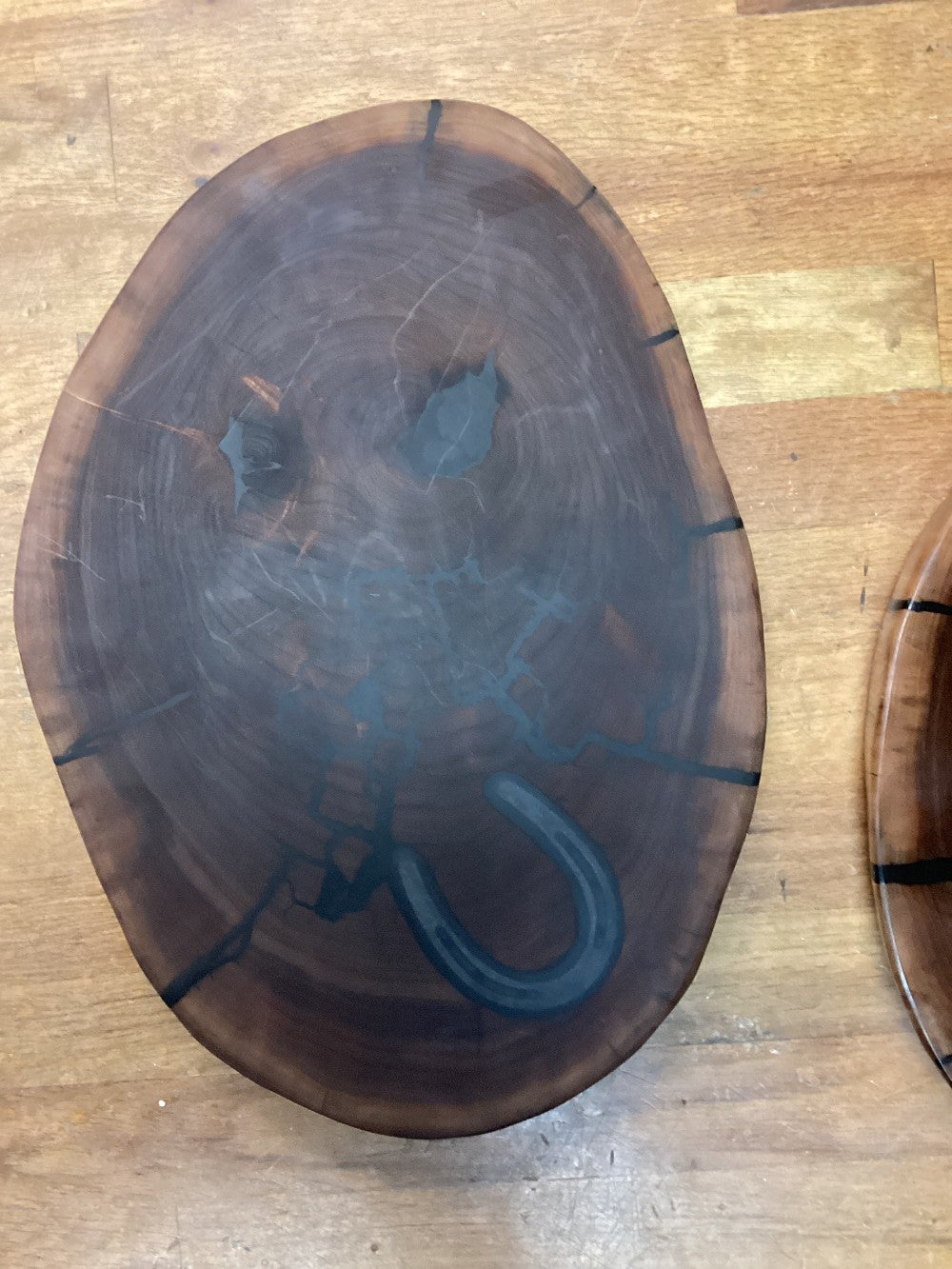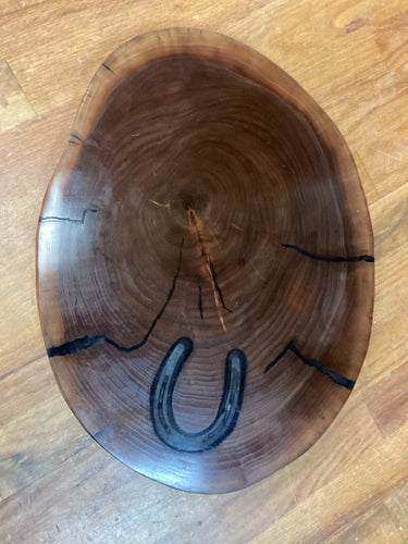 Charcuterie Board Round Horseshoe Inlay, Walnut