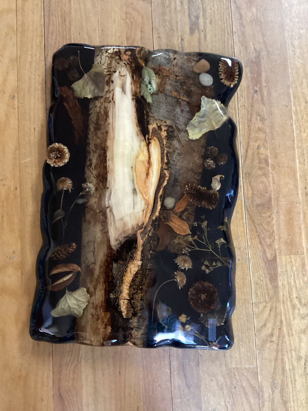 Charcuterie Board Wood/Flower Epoxied Inlay 15x28, Walnut