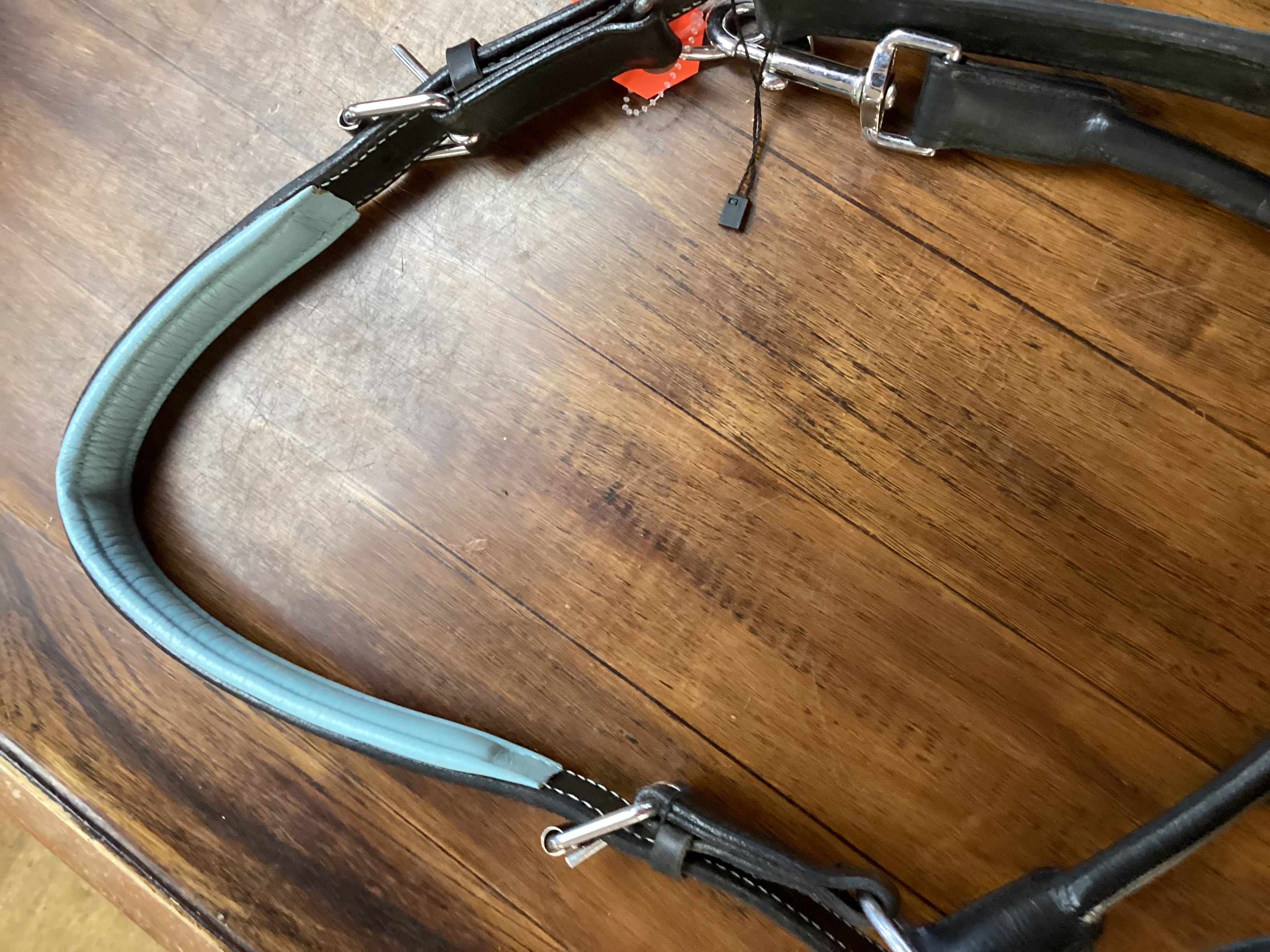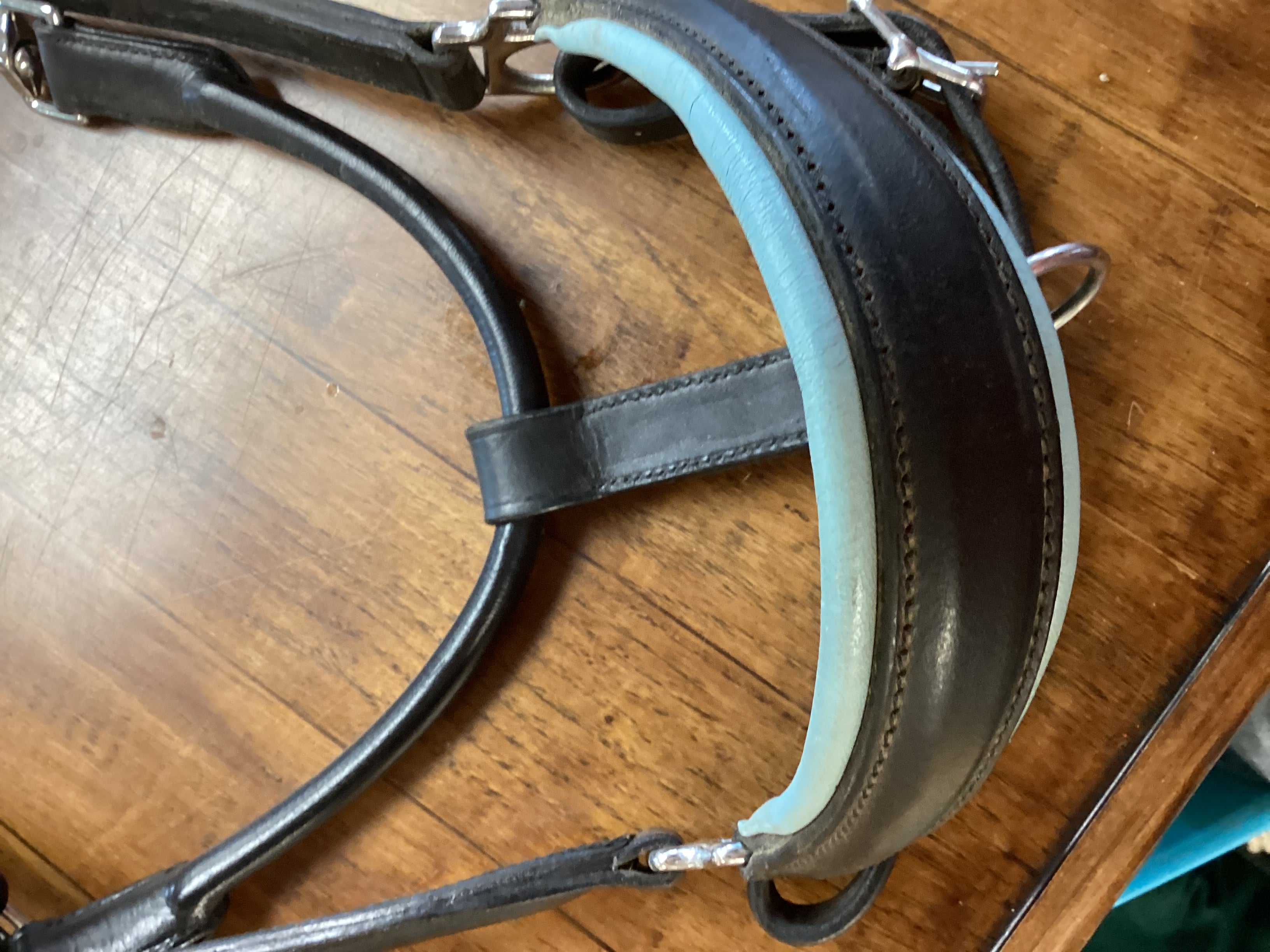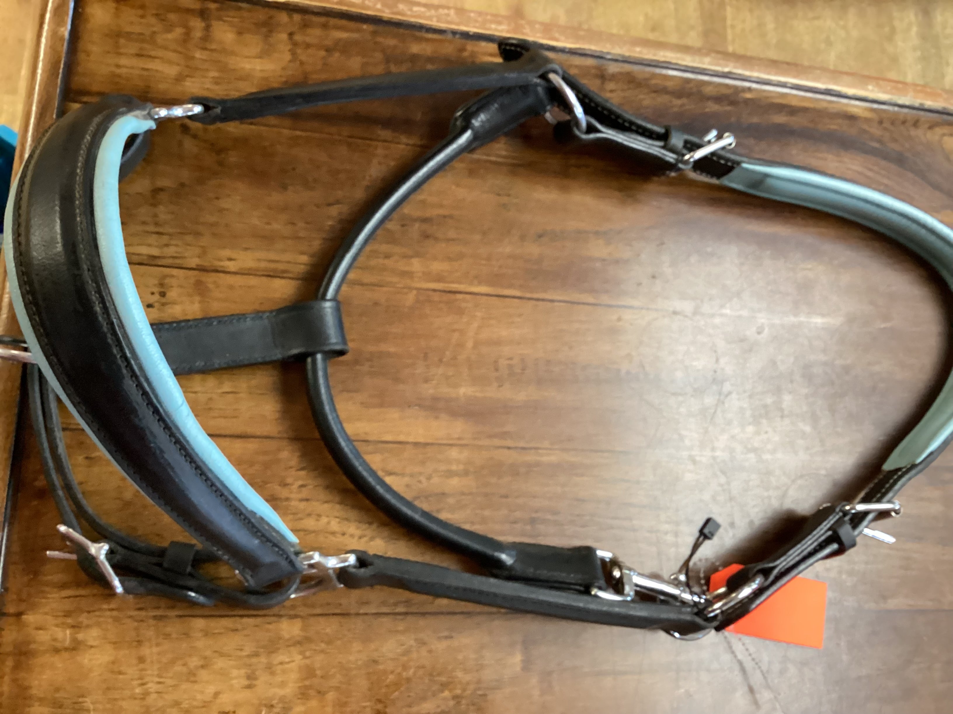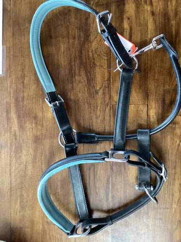 Halter Ego Black Leather Halter with Blue Padding - Full