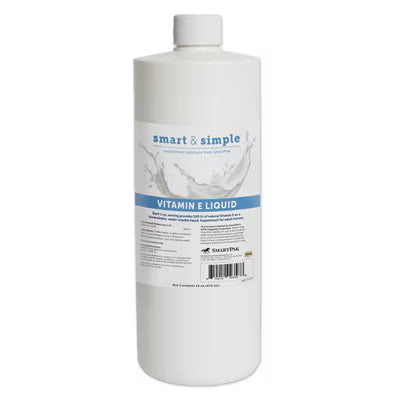 Smart & Simple Vitamin E Liquid was formulated to address Vitamin E deficiencies using natural d-alpha-tocopherol, the most effective form for raising Vitamin E levels1. This unique vitamin E has been converted from a fat-soluble vitamin into a water-soluble vitamin, allowing for quick absorption into your horse's bloodstream to help achieve optimal levels.