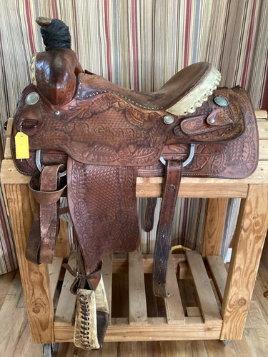 15.5" Cain's West Saddle w Flank Cinch, Lat, OB, SS, Cinch - Narrow Tree/ SQB