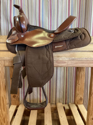 13" Circle Y Cordura and Leather Saddle - Wide - w Latigo, S straps, Off Billet - Wide