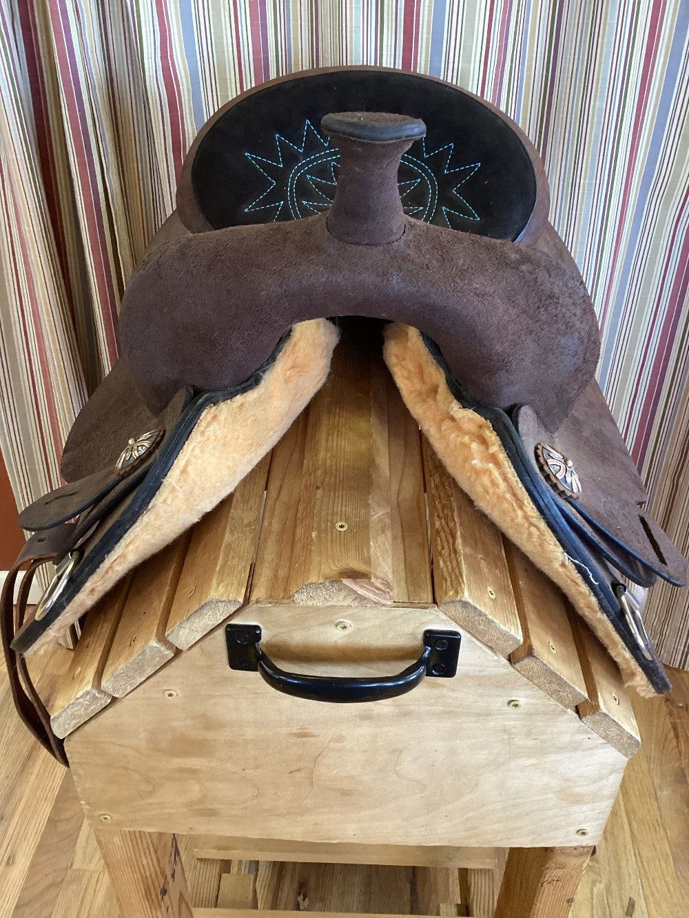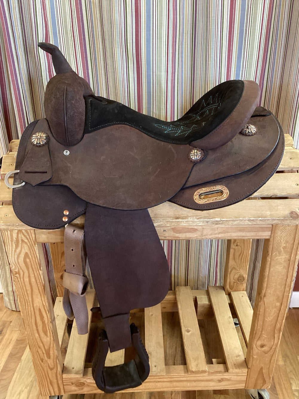 16" High Horse Trainer Oakland Saddle w Latigo, Off Billet, S Straps - Wide Tree - Special Order