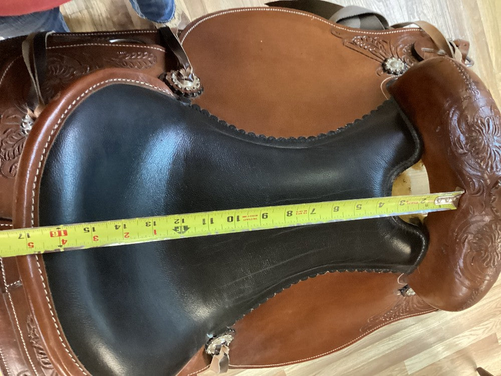16.5" Trail Saddle w Breast Collar, Lat, OB - SQB/Narrow/6.5"
