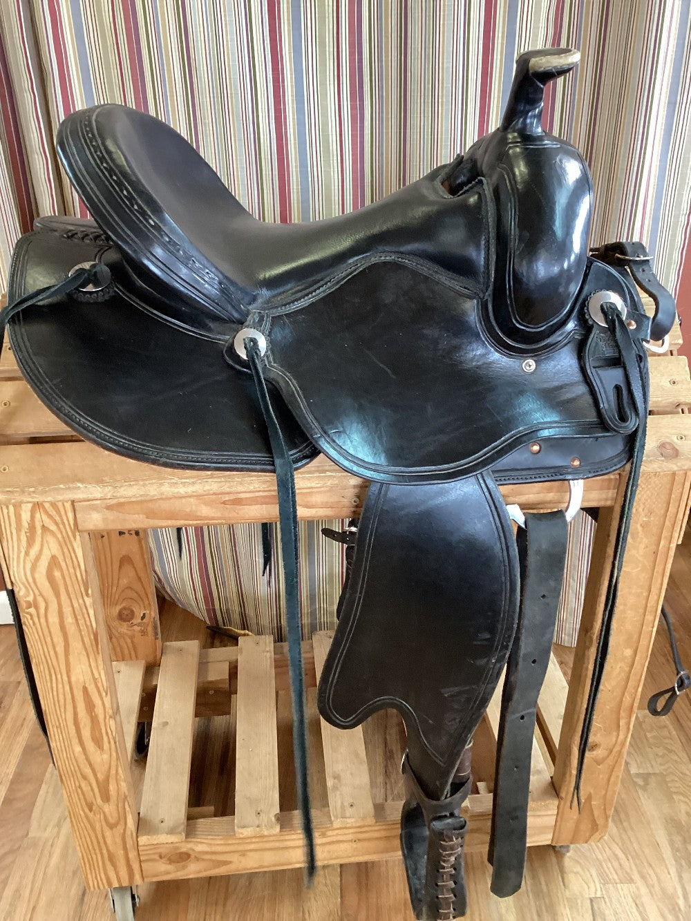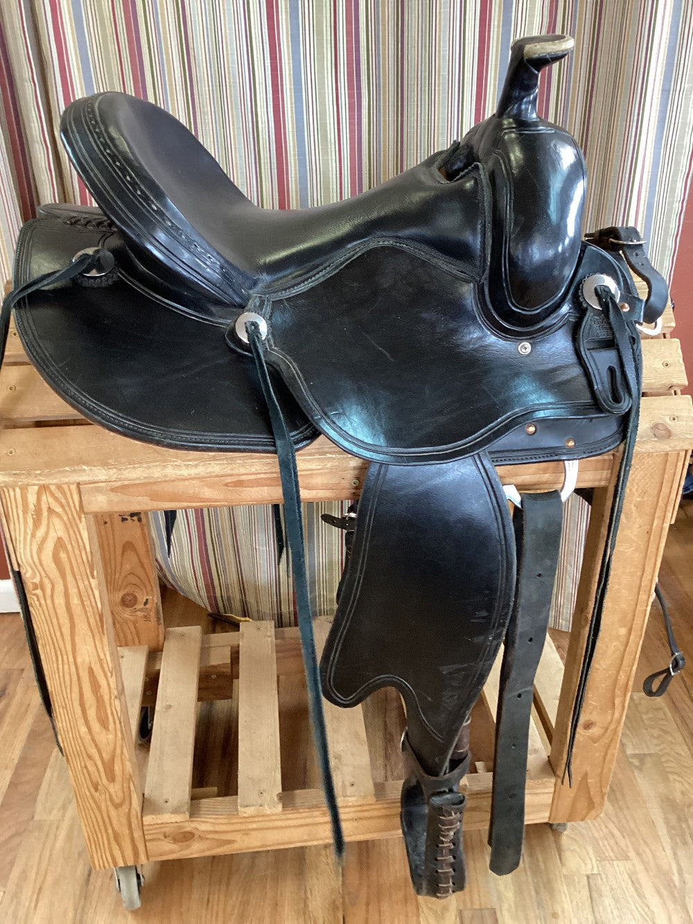 16” CO Saddlery Black Saddle w/ Breast Collar, Lat, OB, SS - XW