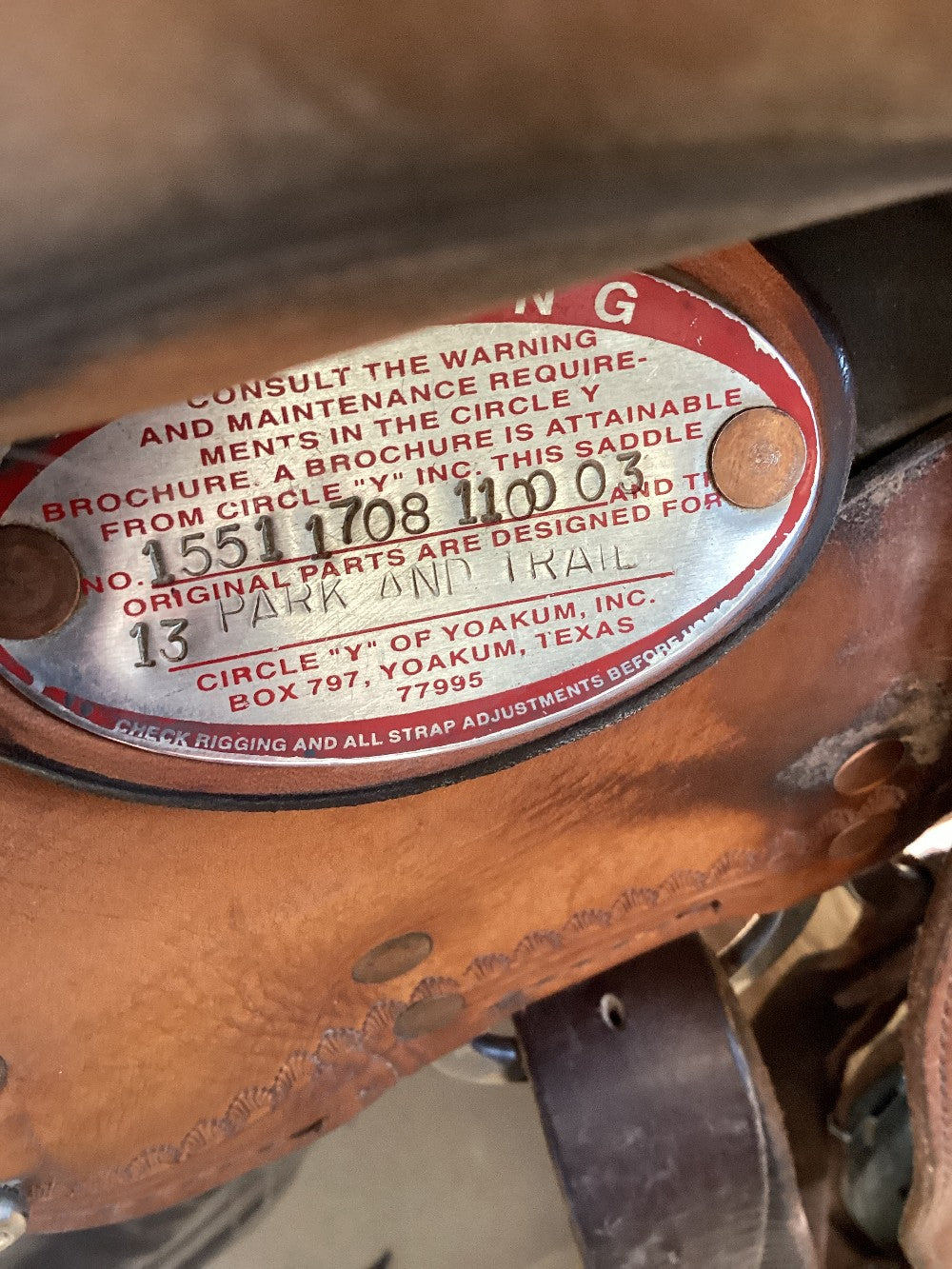 17" Circle Y Park and Trail Saddle w Lat, OB, Fl Bllts - Wide Tree