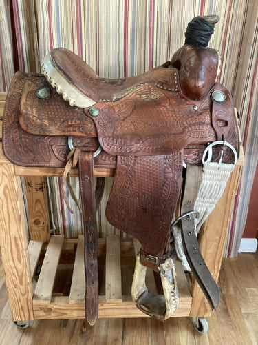 15.5" Cain's West Saddle w Flank Cinch, Lat, OB, SS, Cinch - Narrow Tree/ SQB